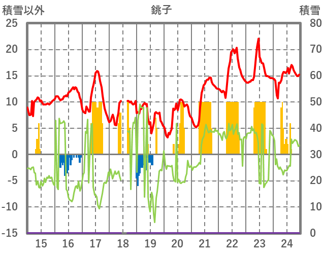 | 日 | 時 | 気温 | 降水 | 風向/風速 | 日照 | 積雪 | 降雪 |