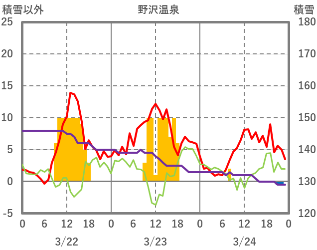 | 日 | 時 | 気温 | 降水 | 風向/風速 | 日照 | 積雪 | 降雪 |