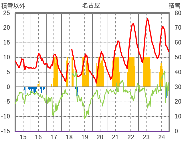 | 日 | 時 | 気温 | 降水 | 風向/風速 | 日照 | 積雪 | 降雪 |
