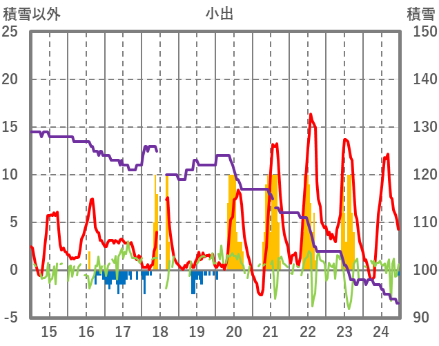 | 日 | 時 | 気温 | 降水 | 風向/風速 | 日照 | 積雪 | 降雪 |