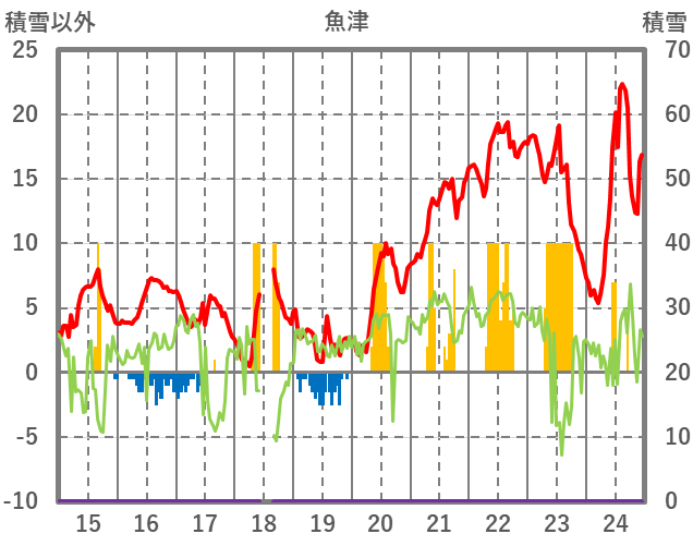 | 日 | 時 | 気温 | 降水 | 風向/風速 | 日照 | 積雪 | 降雪 |