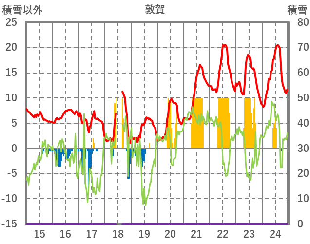 | 日 | 時 | 気温 | 降水 | 風向/風速 | 日照 | 積雪 | 降雪 |