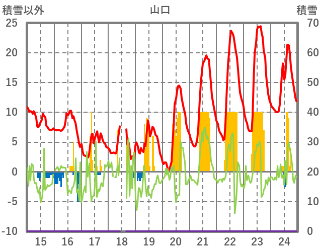 | 日 | 時 | 気温 | 降水 | 風向/風速 | 日照 | 積雪 | 降雪 |