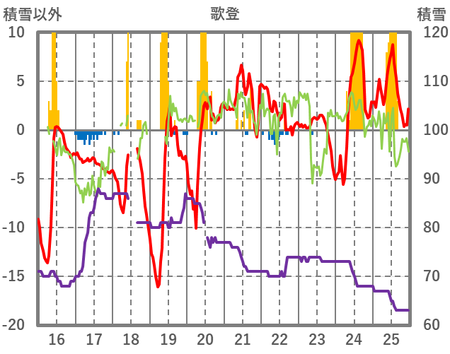 | 日 | 時 | 気温 | 降水 | 風向/風速 | 日照 | 積雪 | 降雪 |