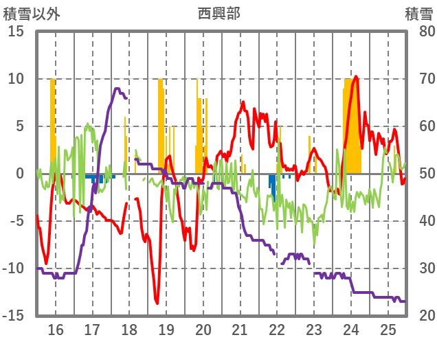 | 日 | 時 | 気温 | 降水 | 風向/風速 | 日照 | 積雪 | 降雪 |