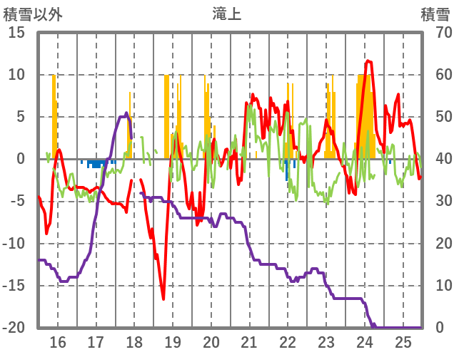 | 日 | 時 | 気温 | 降水 | 風向/風速 | 日照 | 積雪 | 降雪 |