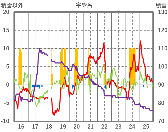 | 日 | 時 | 気温 | 降水 | 風向/風速 | 日照 | 積雪 | 降雪 |