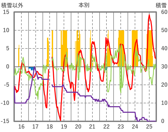 | 日 | 時 | 気温 | 降水 | 風向/風速 | 日照 | 積雪 | 降雪 |