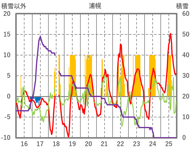 | 日 | 時 | 気温 | 降水 | 風向/風速 | 日照 | 積雪 | 降雪 |