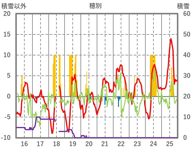 | 日 | 時 | 気温 | 降水 | 風向/風速 | 日照 | 積雪 | 降雪 |
