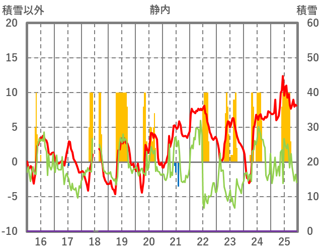 | 日 | 時 | 気温 | 降水 | 風向/風速 | 日照 | 積雪 | 降雪 |