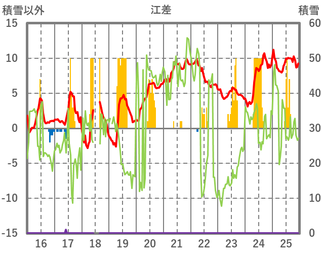 | 日 | 時 | 気温 | 降水 | 風向/風速 | 日照 | 積雪 | 降雪 |