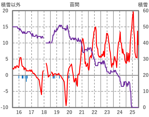 | 日 | 時 | 気温 | 降水 | 風向/風速 | 日照 | 積雪 | 降雪 |