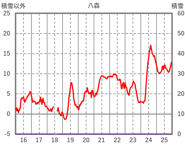 | 日 | 時 | 気温 | 降水 | 風向/風速 | 日照 | 積雪 | 降雪 |