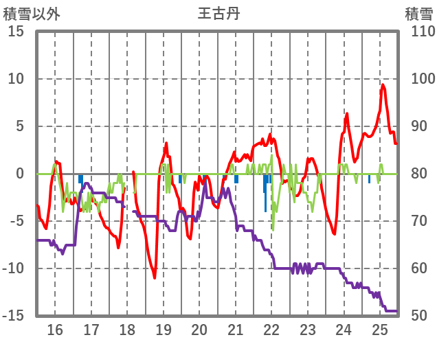 | 日 | 時 | 気温 | 降水 | 風向/風速 | 日照 | 積雪 | 降雪 |