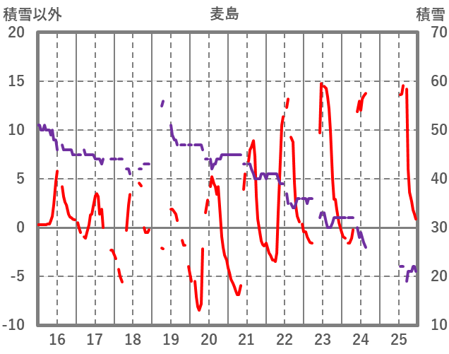 | 日 | 時 | 気温 | 降水 | 風向/風速 | 日照 | 積雪 | 降雪 |