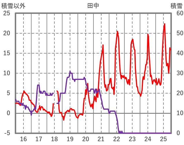 | 日 | 時 | 気温 | 降水 | 風向/風速 | 日照 | 積雪 | 降雪 |