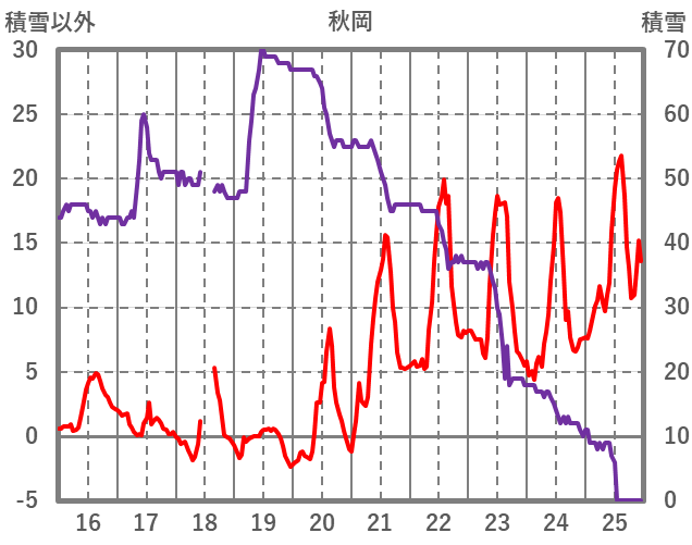 | 日 | 時 | 気温 | 降水 | 風向/風速 | 日照 | 積雪 | 降雪 |
