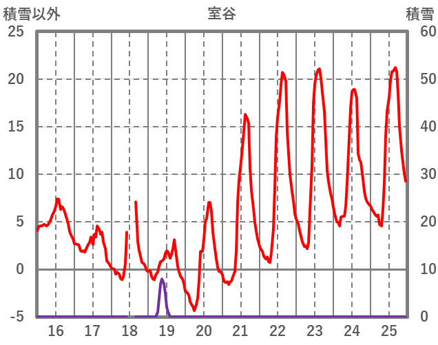 | 日 | 時 | 気温 | 降水 | 風向/風速 | 日照 | 積雪 | 降雪 |