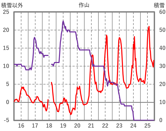 | 日 | 時 | 気温 | 降水 | 風向/風速 | 日照 | 積雪 | 降雪 |