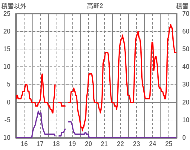 | 日 | 時 | 気温 | 降水 | 風向/風速 | 日照 | 積雪 | 降雪 |