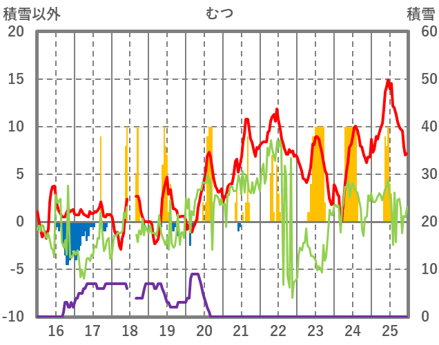 | 日 | 時 | 気温 | 降水 | 風向/風速 | 日照 | 積雪 | 降雪 |
