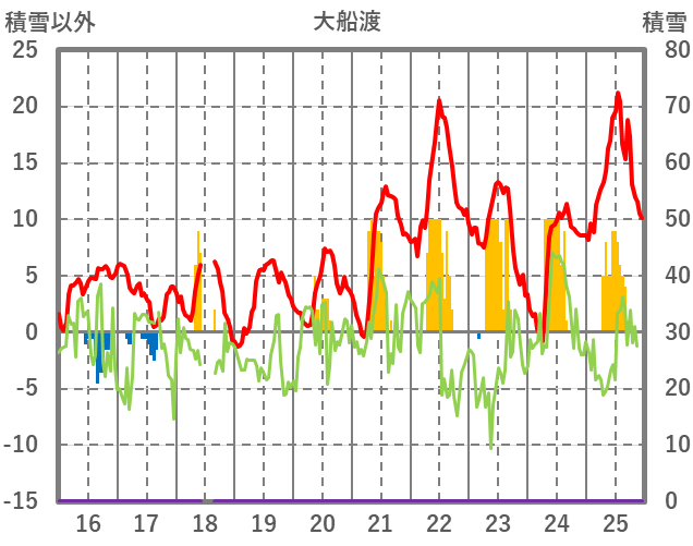 | 日 | 時 | 気温 | 降水 | 風向/風速 | 日照 | 積雪 | 降雪 |