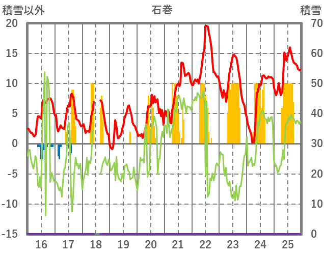 | 日 | 時 | 気温 | 降水 | 風向/風速 | 日照 | 積雪 | 降雪 |