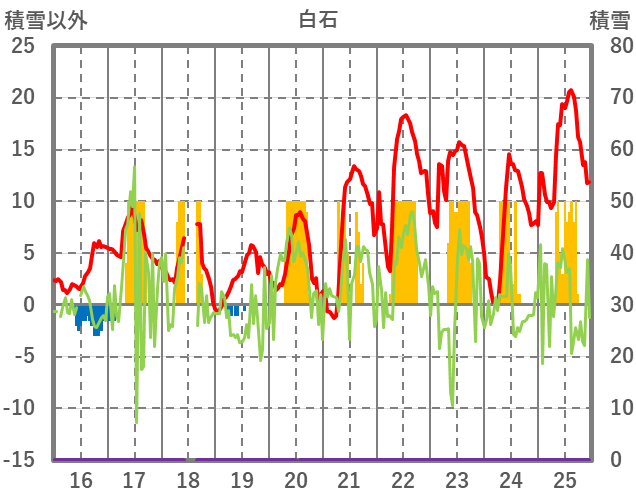 | 日 | 時 | 気温 | 降水 | 風向/風速 | 日照 | 積雪 | 降雪 |