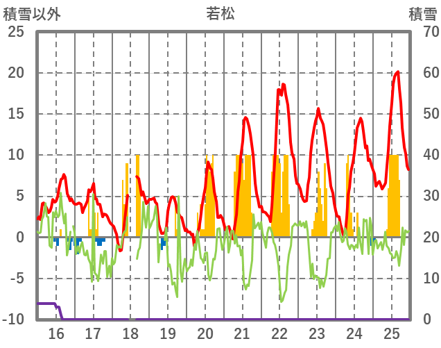 | 日 | 時 | 気温 | 降水 | 風向/風速 | 日照 | 積雪 | 降雪 |