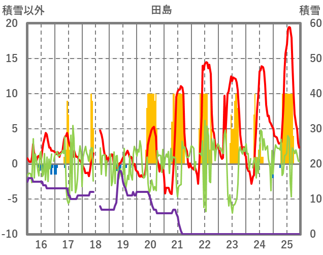 | 日 | 時 | 気温 | 降水 | 風向/風速 | 日照 | 積雪 | 降雪 |