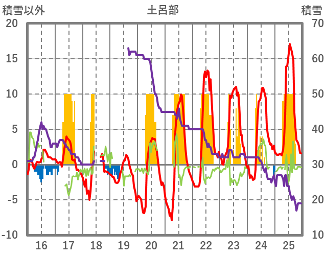 | 日 | 時 | 気温 | 降水 | 風向/風速 | 日照 | 積雪 | 降雪 |