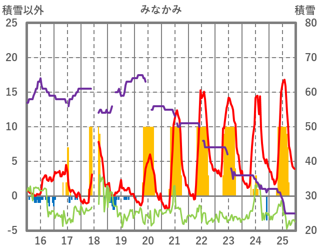 | 日 | 時 | 気温 | 降水 | 風向/風速 | 日照 | 積雪 | 降雪 |