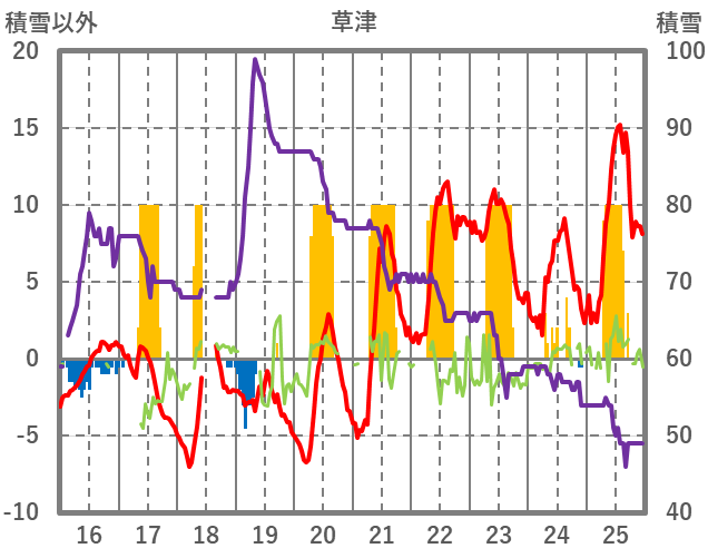 | 日 | 時 | 気温 | 降水 | 風向/風速 | 日照 | 積雪 | 降雪 |
