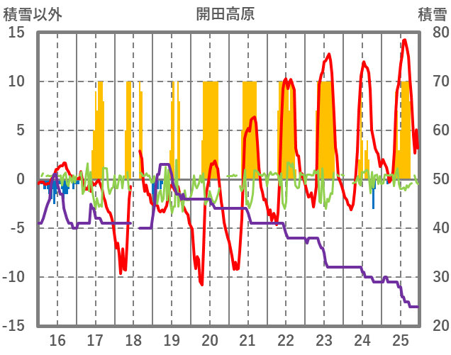 | 日 | 時 | 気温 | 降水 | 風向/風速 | 日照 | 積雪 | 降雪 |