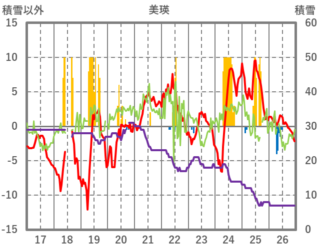| 日 | 時 | 気温 | 降水 | 風向/風速 | 日照 | 積雪 | 降雪 |
