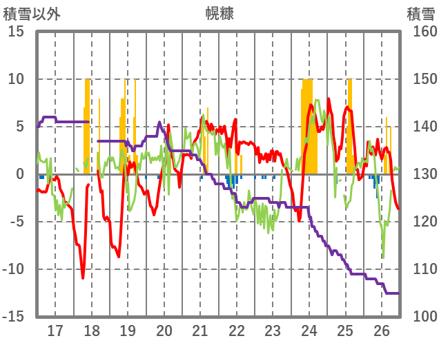 | 日 | 時 | 気温 | 降水 | 風向/風速 | 日照 | 積雪 | 降雪 |