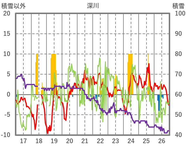 | 日 | 時 | 気温 | 降水 | 風向/風速 | 日照 | 積雪 | 降雪 |