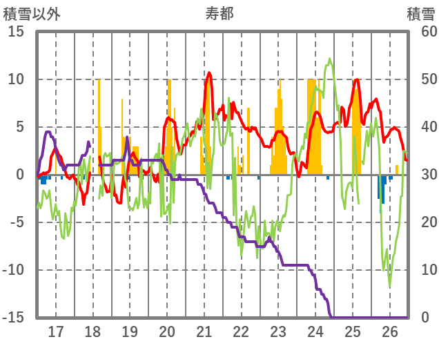 | 日 | 時 | 気温 | 降水 | 風向/風速 | 日照 | 積雪 | 降雪 |