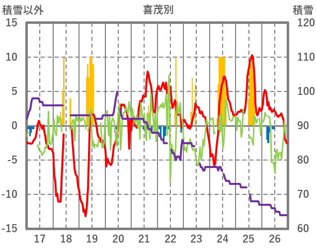 | 日 | 時 | 気温 | 降水 | 風向/風速 | 日照 | 積雪 | 降雪 |