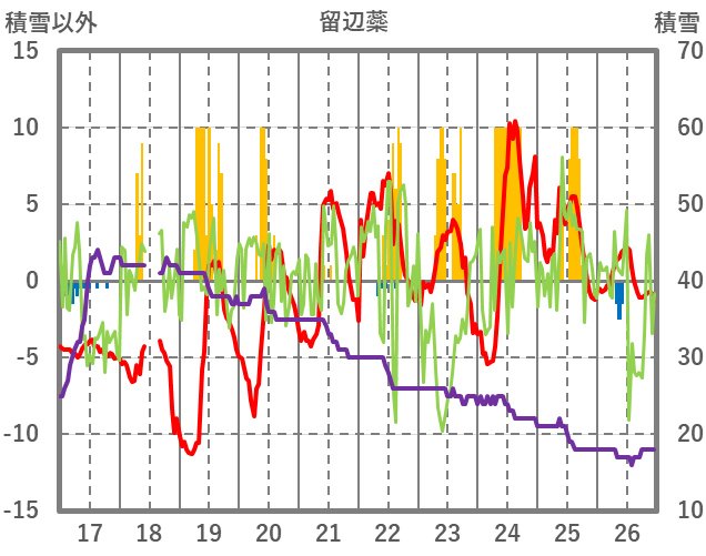 | 日 | 時 | 気温 | 降水 | 風向/風速 | 日照 | 積雪 | 降雪 |
