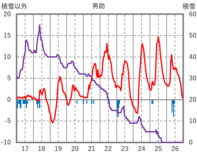 | 日 | 時 | 気温 | 降水 | 風向/風速 | 日照 | 積雪 | 降雪 |