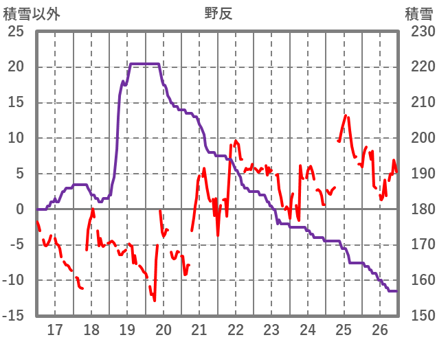 | 日 | 時 | 気温 | 降水 | 風向/風速 | 日照 | 積雪 | 降雪 |
