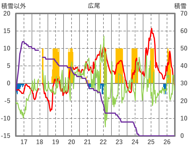 | 日 | 時 | 気温 | 降水 | 風向/風速 | 日照 | 積雪 | 降雪 |