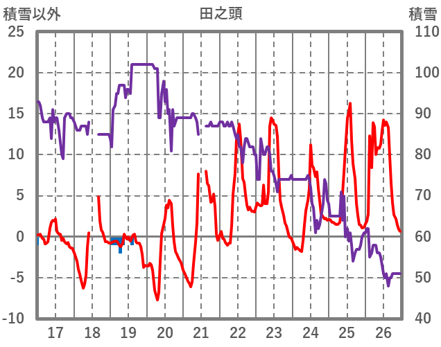 | 日 | 時 | 気温 | 降水 | 風向/風速 | 日照 | 積雪 | 降雪 |