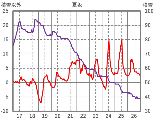 | 日 | 時 | 気温 | 降水 | 風向/風速 | 日照 | 積雪 | 降雪 |