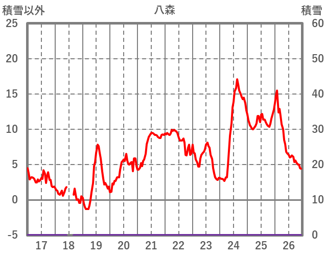 | 日 | 時 | 気温 | 降水 | 風向/風速 | 日照 | 積雪 | 降雪 |