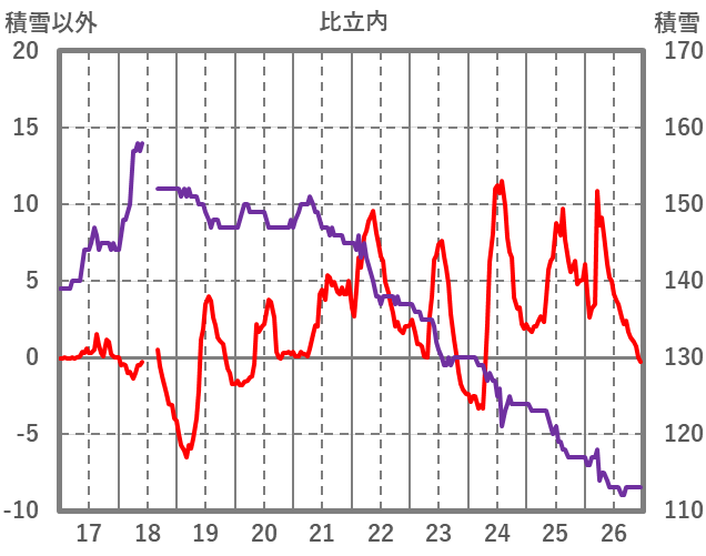 | 日 | 時 | 気温 | 降水 | 風向/風速 | 日照 | 積雪 | 降雪 |