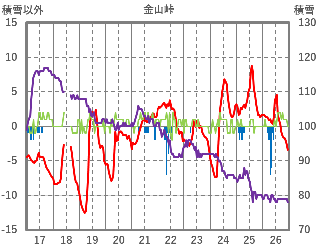 | 日 | 時 | 気温 | 降水 | 風向/風速 | 日照 | 積雪 | 降雪 |
