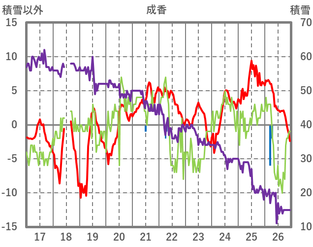 | 日 | 時 | 気温 | 降水 | 風向/風速 | 日照 | 積雪 | 降雪 |